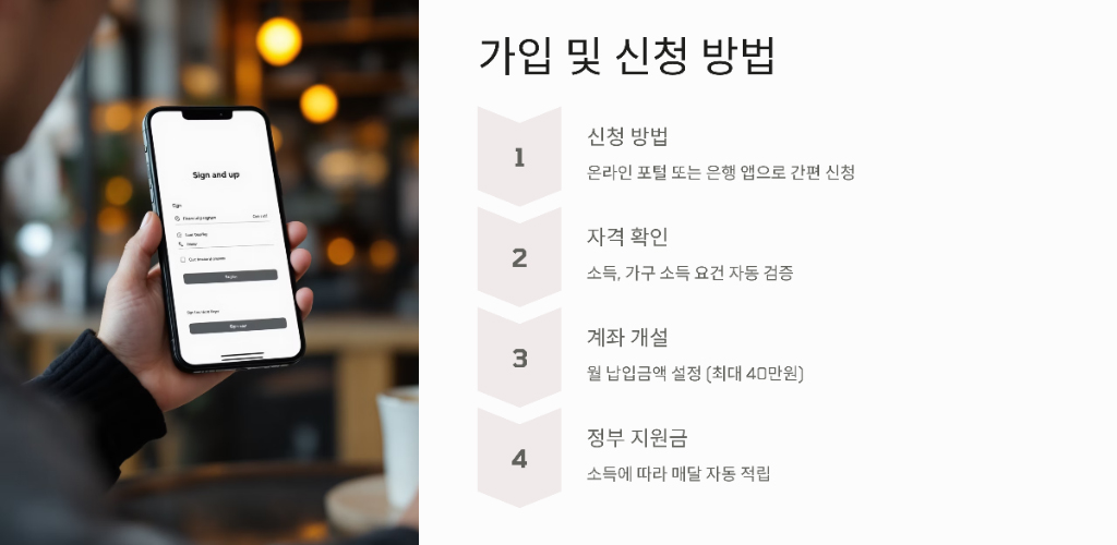 - 월 40만 원 납입 시 정부 지원금 최대 30만 원 추가